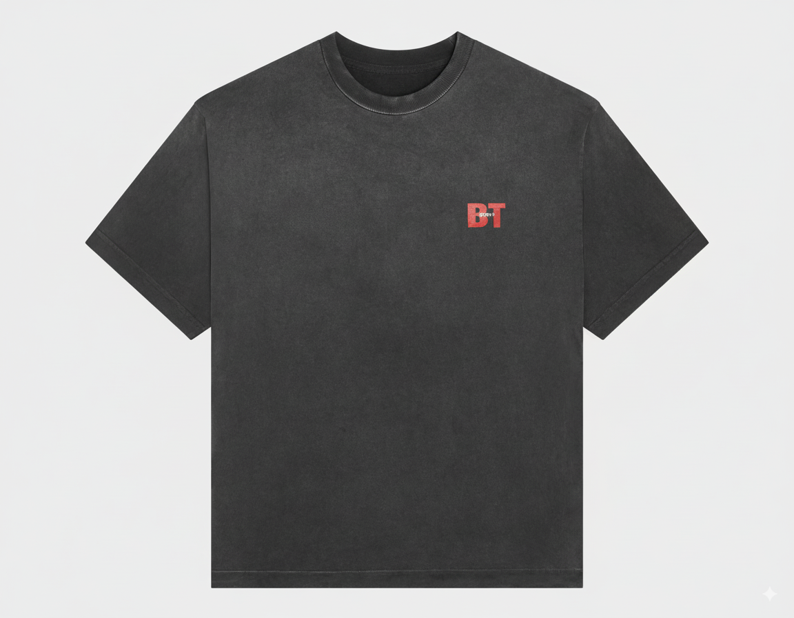 260 GSM heavyweight cotton jersey in burgundy red with electric orange Visual Division print. Built for the production world made to hold up on set, in the studio, and anywhere visuals come to life. Designed and manufactured in Los Angeles.